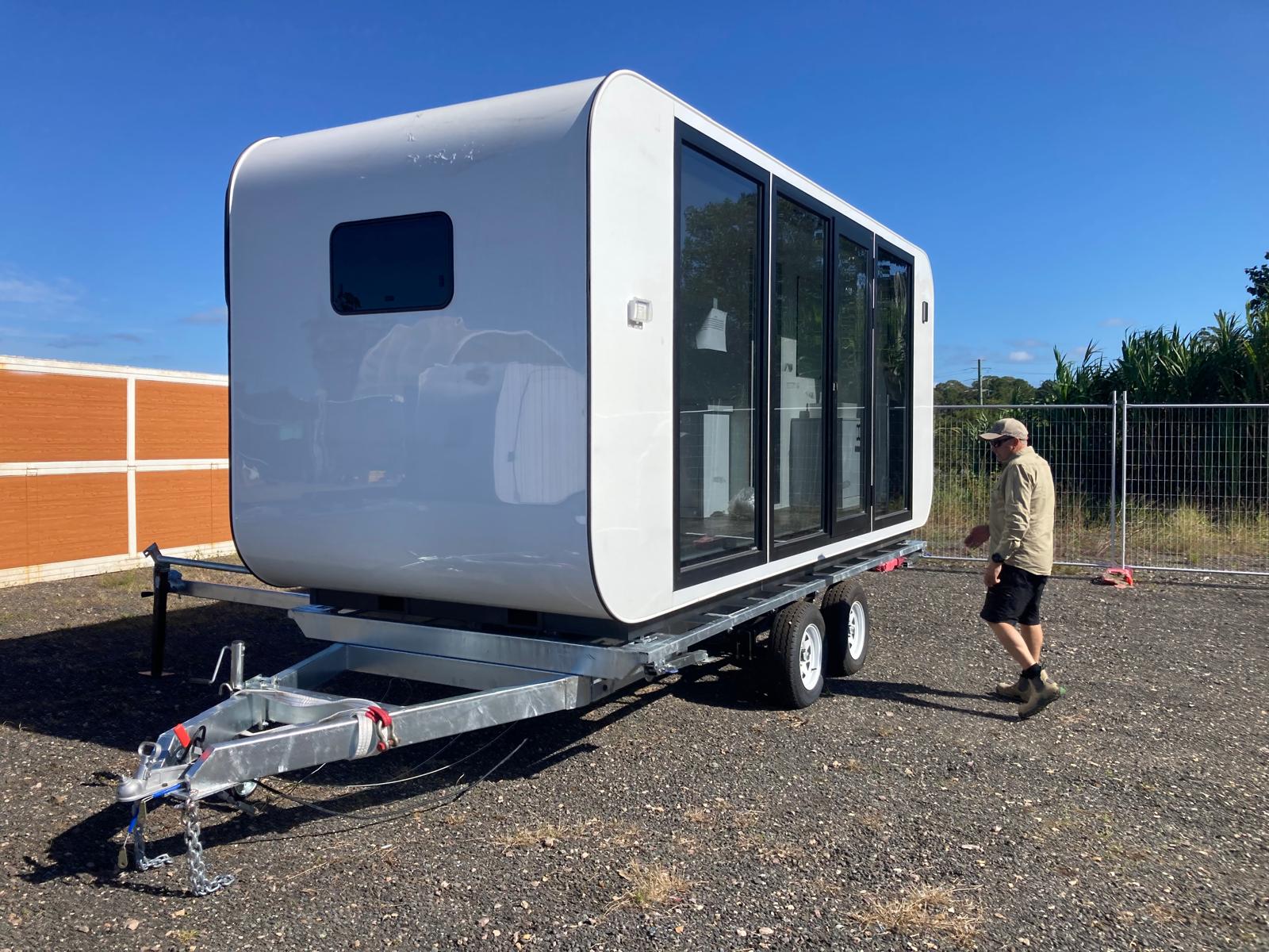 The Expanda Pod 4.0m is slightly smaller but comes with a fold-out bed and built in storage to maximise space. Beautiful design with premium pictures, fully insulated, durable and weatherproof with internal and external power points.